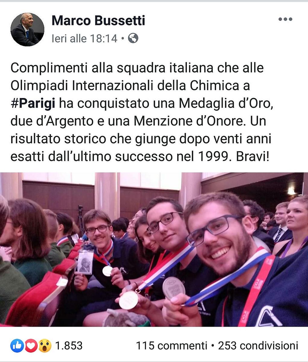 Messaggio del Ministro Bussetti per le Olimpiadi della Chimica