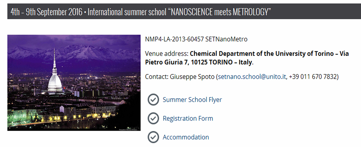 il progetto FP7 SETNanoMetro organizza la International Summer School "Nanoscience meets metrology" (www.setnanometro.eu)