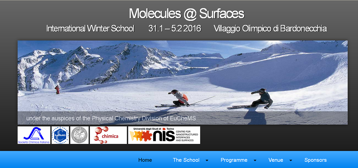 Per l'anno 2016 la Divisione di Chimica Fisica ha organizzato la International Winter School "Molecules@Surfaces" che si è svolta a Bardonecchia (Torino) dal 31 gennaio al 5 febbraio