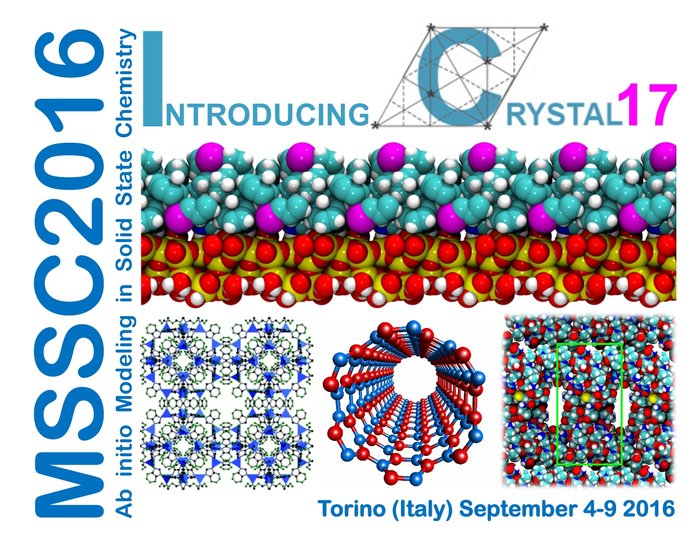 The Theoretical Chemistry Group of the University of Torino announces the: MSSC2016 Summer School in "Ab initio Modeling in Solid State Chemistry" to be held in Torino (Italy) from September the 4th to September the 9th, 2016.