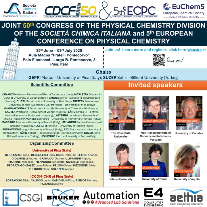 Benvenuti nelle pagine della Divisione di Chimica Fisica. E' uno strumento al servizio della nostra comunità, per scambiarci informazioni, opinioni e segnalare opportunità.